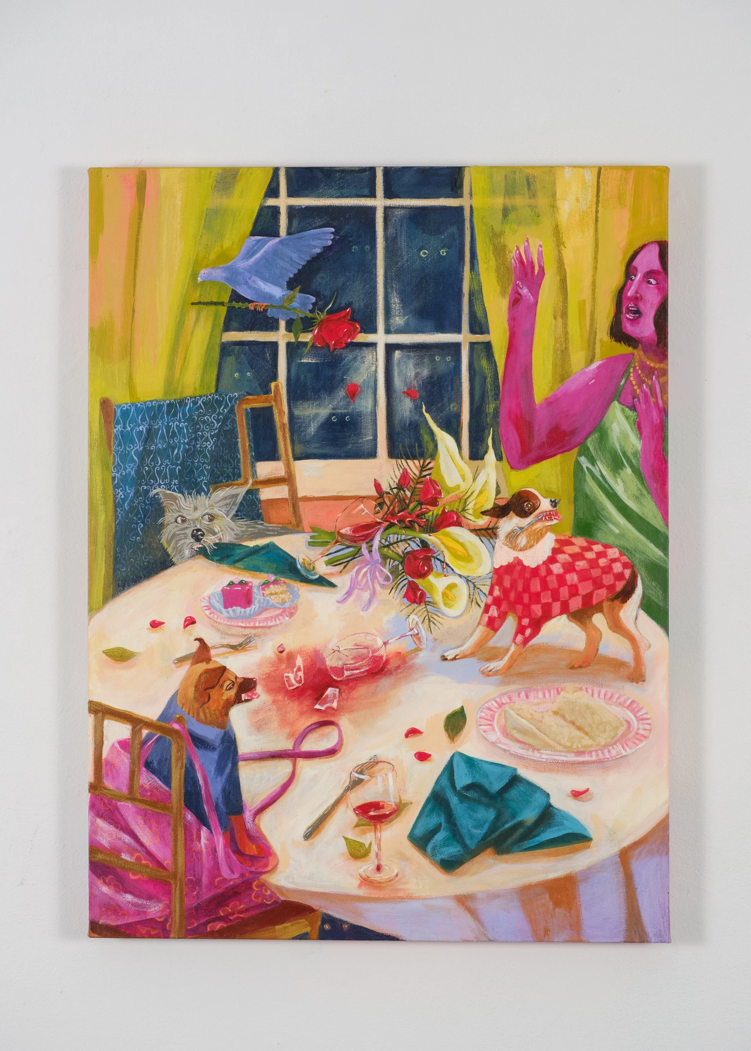 The animals don’t understand the need for all the fuss and feathers; it is a frenzy, over the top, literal feathers and lots of fuss. Still, why not partake? Don’t the animals deserve a little fun too?